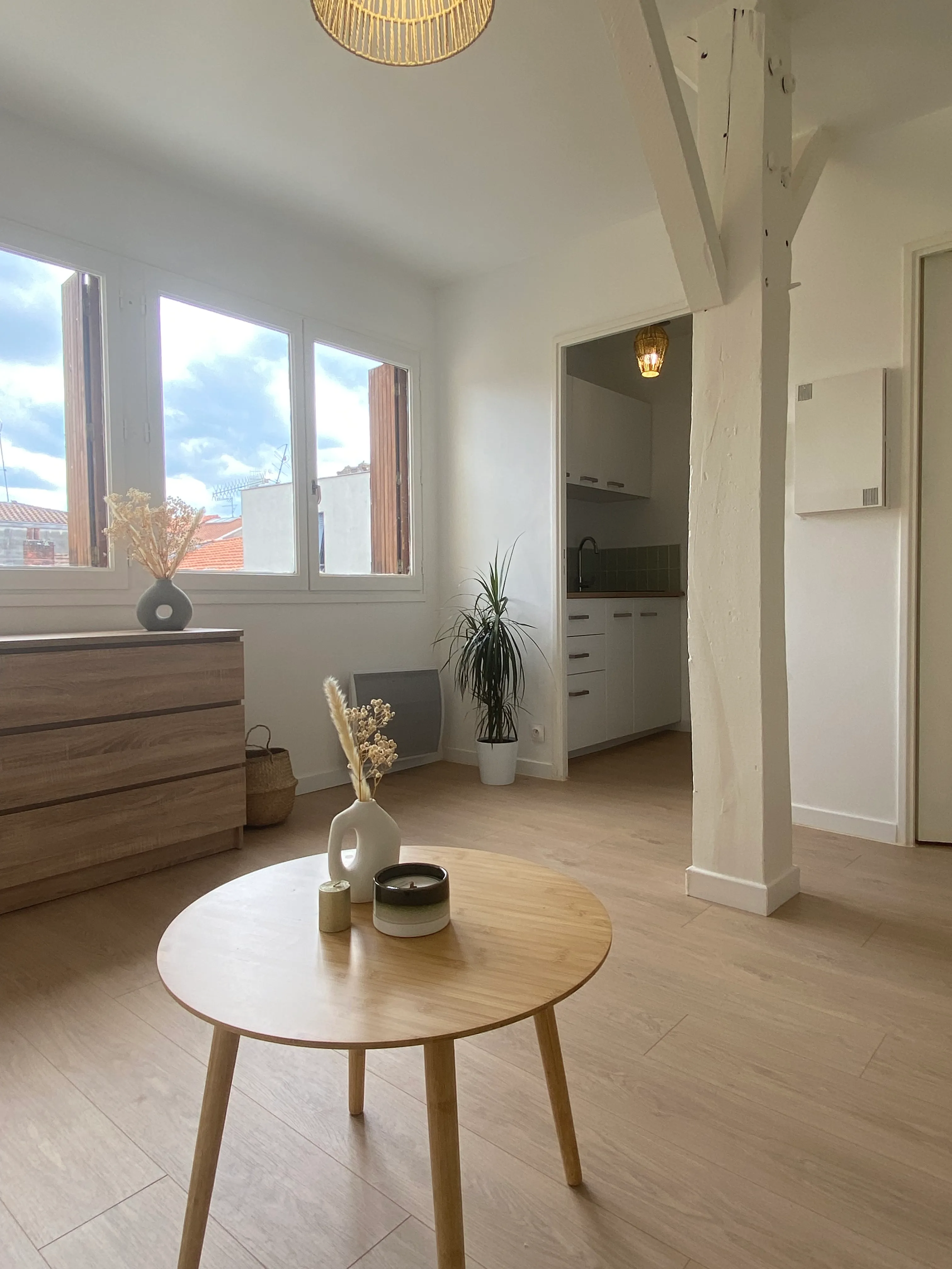 - Un séjour lumineux avec canapé convertible