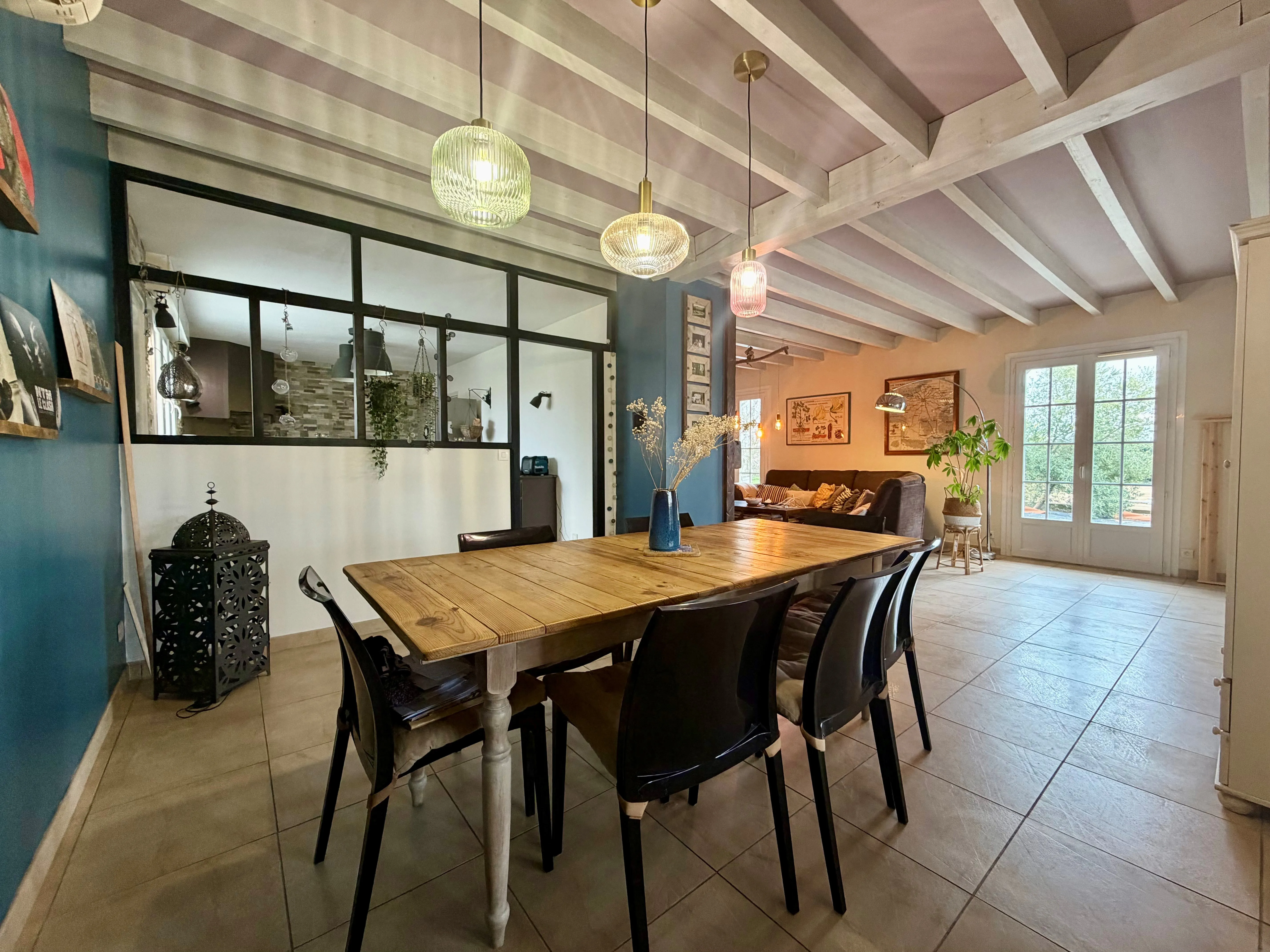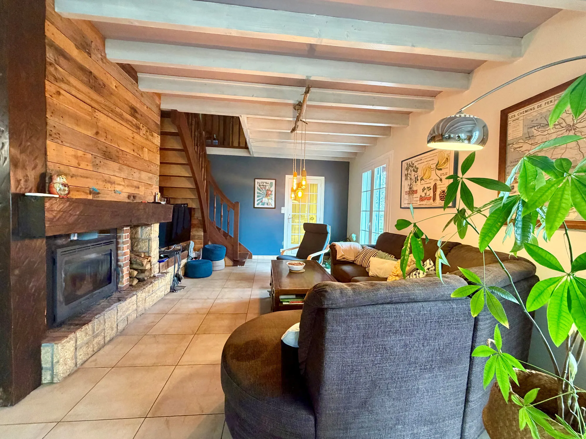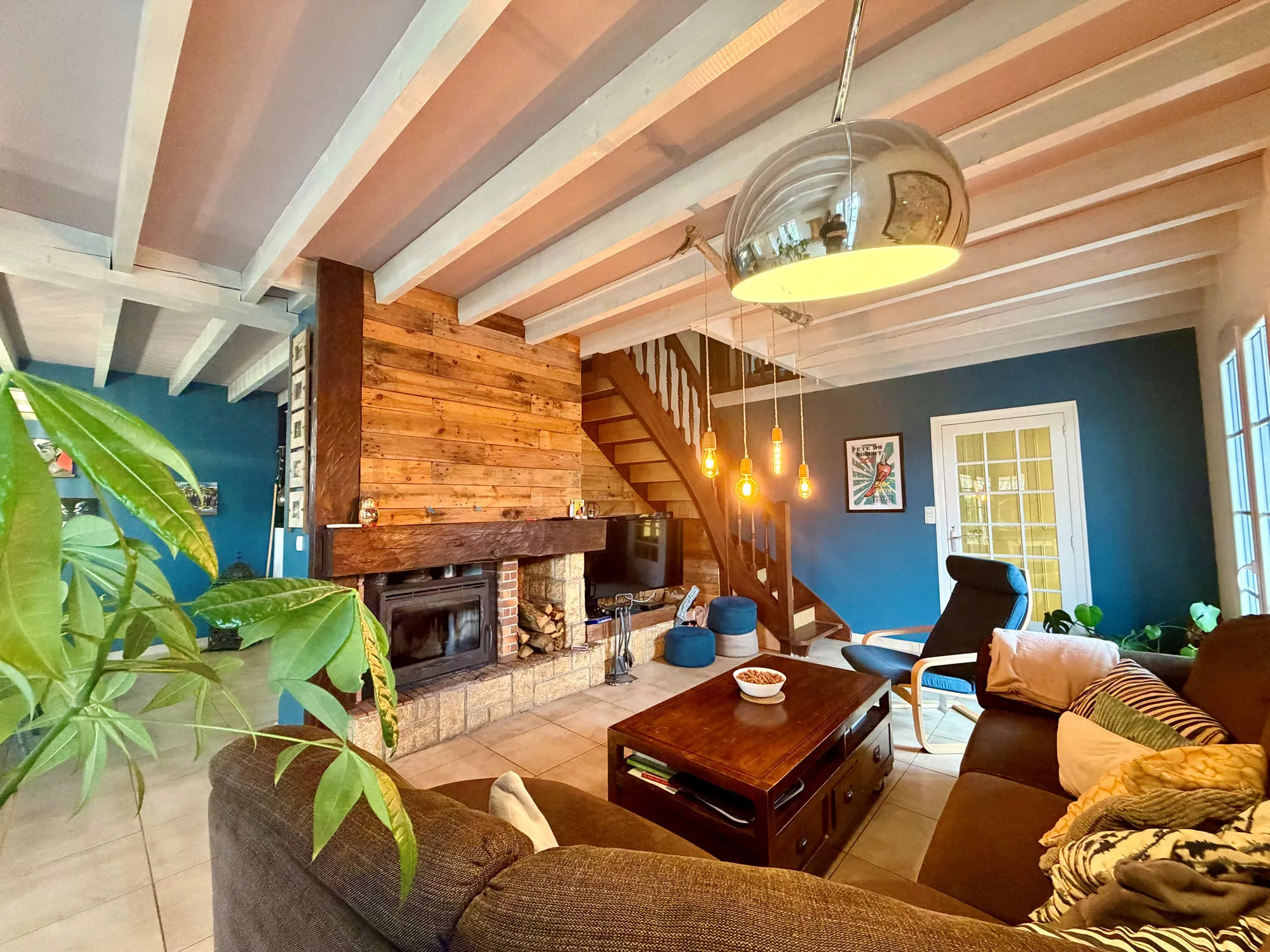 - Lumineuse pièce de vie dotée d'un insert bois.