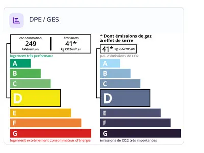 Honoraires à la charge du vendeur. Classe énergie D, Classe climat D Montant estimé des dépenses annuelles d'énergie pour un usage standard : entre2940.00 € et 0 € sur les années 2021, 2022 et 2023 (abonnements compris).