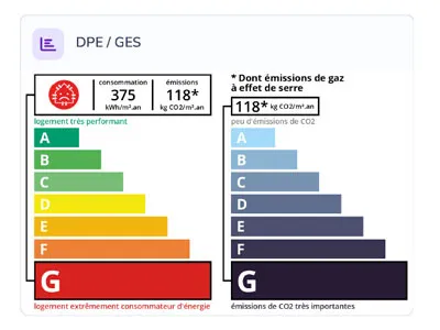 Honoraires à la charge du vendeur. Logement à consommation énergétique excessive : Classe énergie G, Classe climat G. Montant moyen estimé des dépenses annuelles d'énergie pour un usage standard, établi à partir des prix de l'énergie de l'année 2021 : entre 7470.00 et 10150.00 €. Les informations sur les risques auxquels ce bien est exposé sont disponibles sur le site Géorisques : georisques.gouv.fr. Ce bien vous est proposé par un agent commercial (Entreprise individuelle).