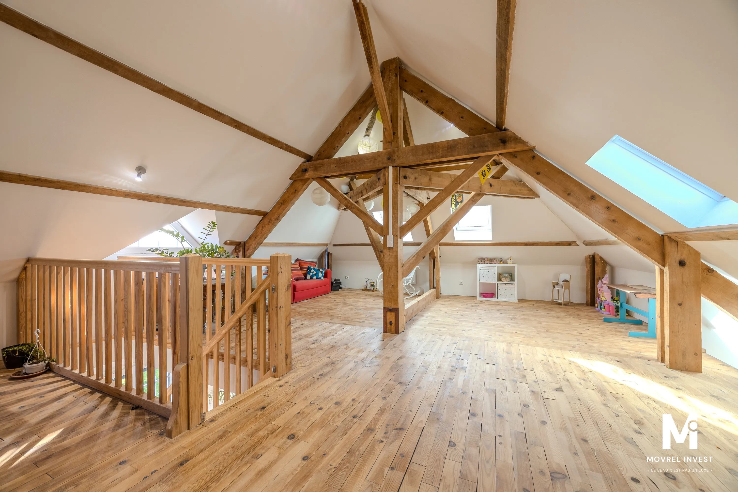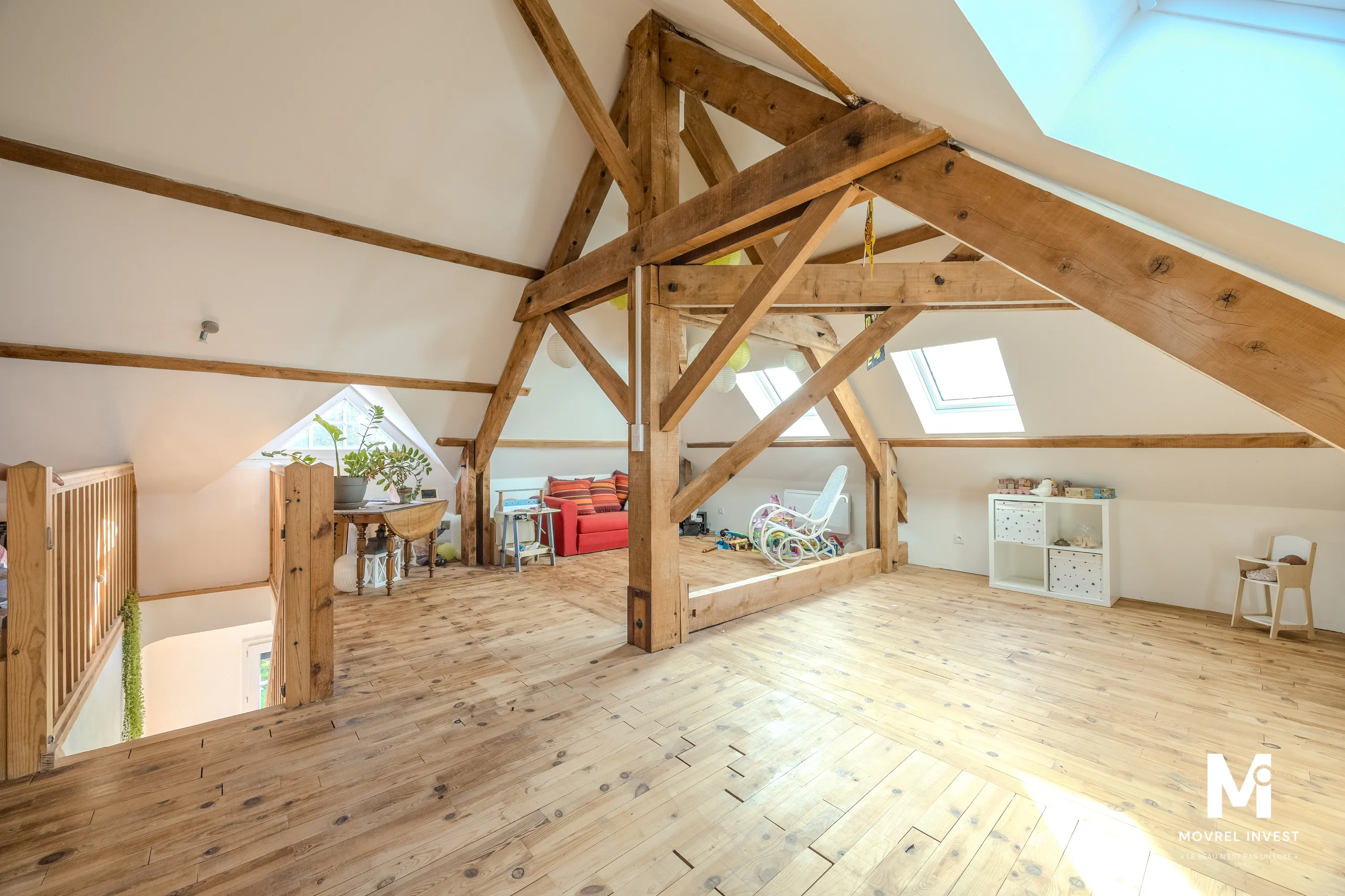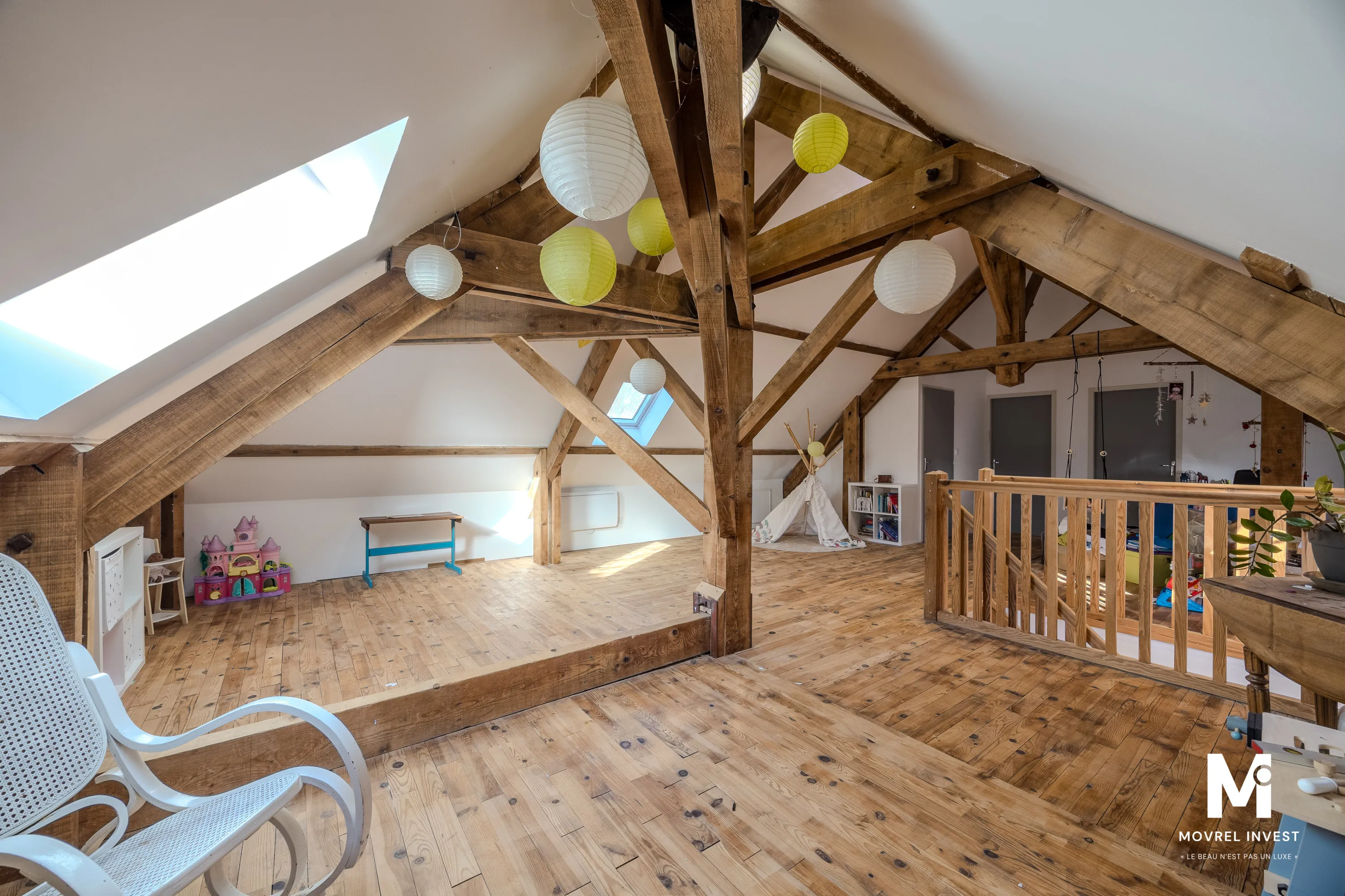 Sa magnifique charpente apparente et son parquet massif ne vous laisseront pas indifférent.